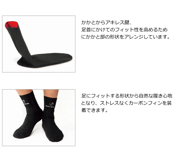スキンダイビング、フリーダイビング用品GULLSKINのカーボンフィン着用時のフィンずれを防止するソックス