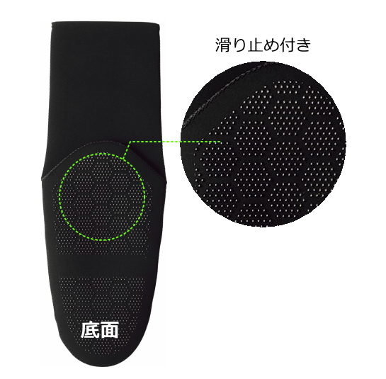 底面には滑り止め加工が施されており、ブーツポケットの中で足が滑りにくく、フィンとの一体感が得られます。